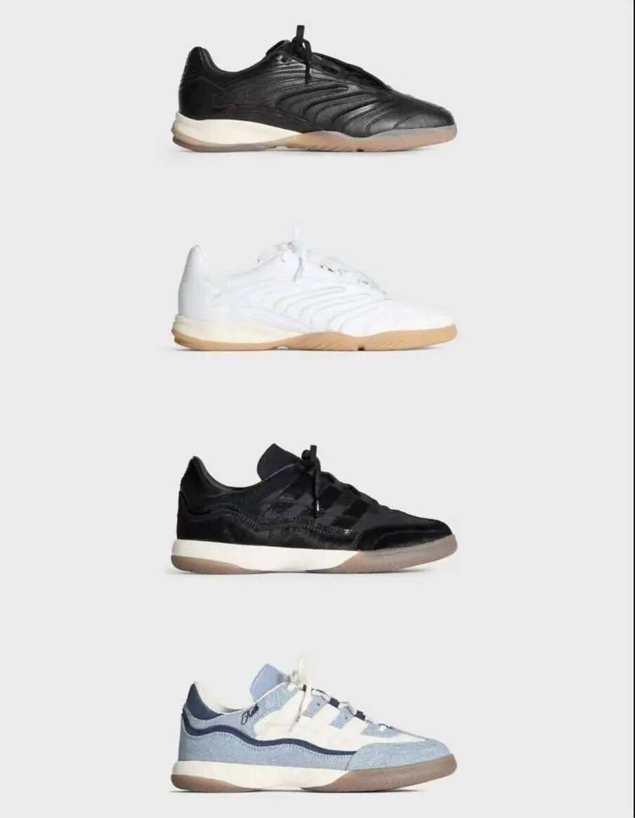 除服饰外,此次 KITH 与 Adidas 还同步带来四款联名球鞋,具体包含 Supernoval Indoor(1998)与 Predator Sala(1994)两个经典鞋型;材质上颇为用心,分别采用皮革、马海毛及丹宁布打造,通过不同质感的碰撞丰富了鞋款单品。